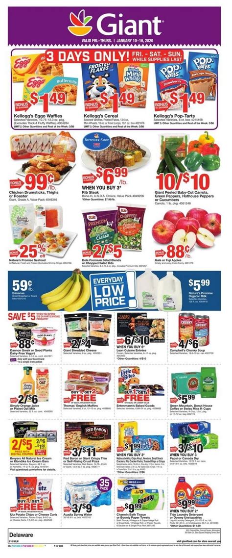 This week's sales circular is chock-full of offers that will save you money and help you stock up on your favorite essentials. From fresh produce to meat, dairy, and pantry staples, Giant Food has got you covered. We're talking apples to avocados, grass-fed beef to organic chicken, and Greek yogurt to whole grain bread - the list goes on! You'll find discounts on both everyday items and special buys, so be sure to check out the sales flyer carefully and start planning your shopping trip. The sales are valid effective now through Saturday, so don't wait - head to your nearest Giant Food store today or shop online and get your order delivered right to your doorstep.